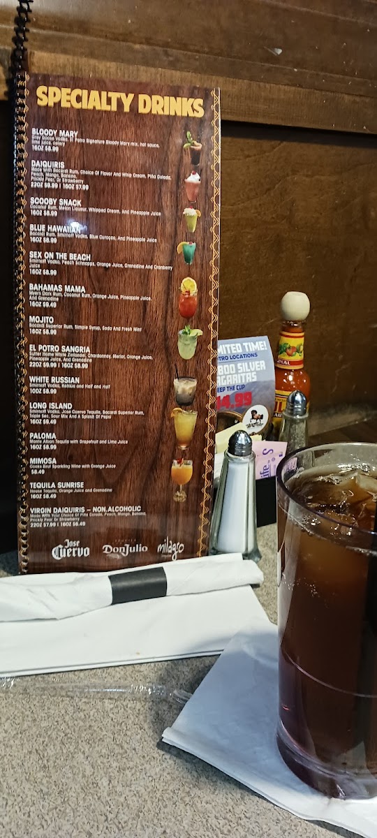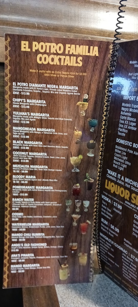 For those seeking a quick bite, the Caldo de Pollo ($6.99) is a comforting choice, offering soul-soothing warmth and flavor. And if you're looking to quench your thirst, El Potro has an impressive selection of liquor and tequila, each shot priced at $7.99, with options ranging from Patron Silver to Don Julio Silver.
